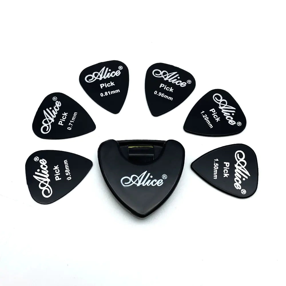 Introducing the 6 Guitar Picks + 1 Holder Case by Alice Mediator, the perfect set for guitarists looking for a variety of picks at their fingertips. This set includes six guitar picks in different thicknesses, along with a convenient holder case for quick and easy storage. The guitar picks come in various thicknesses, providing options to suit different playing styles and preferences. With sizes ranging from 0.58mm to 1.5mm, you can experiment with different tones and textures to find the perfect sound for your music.