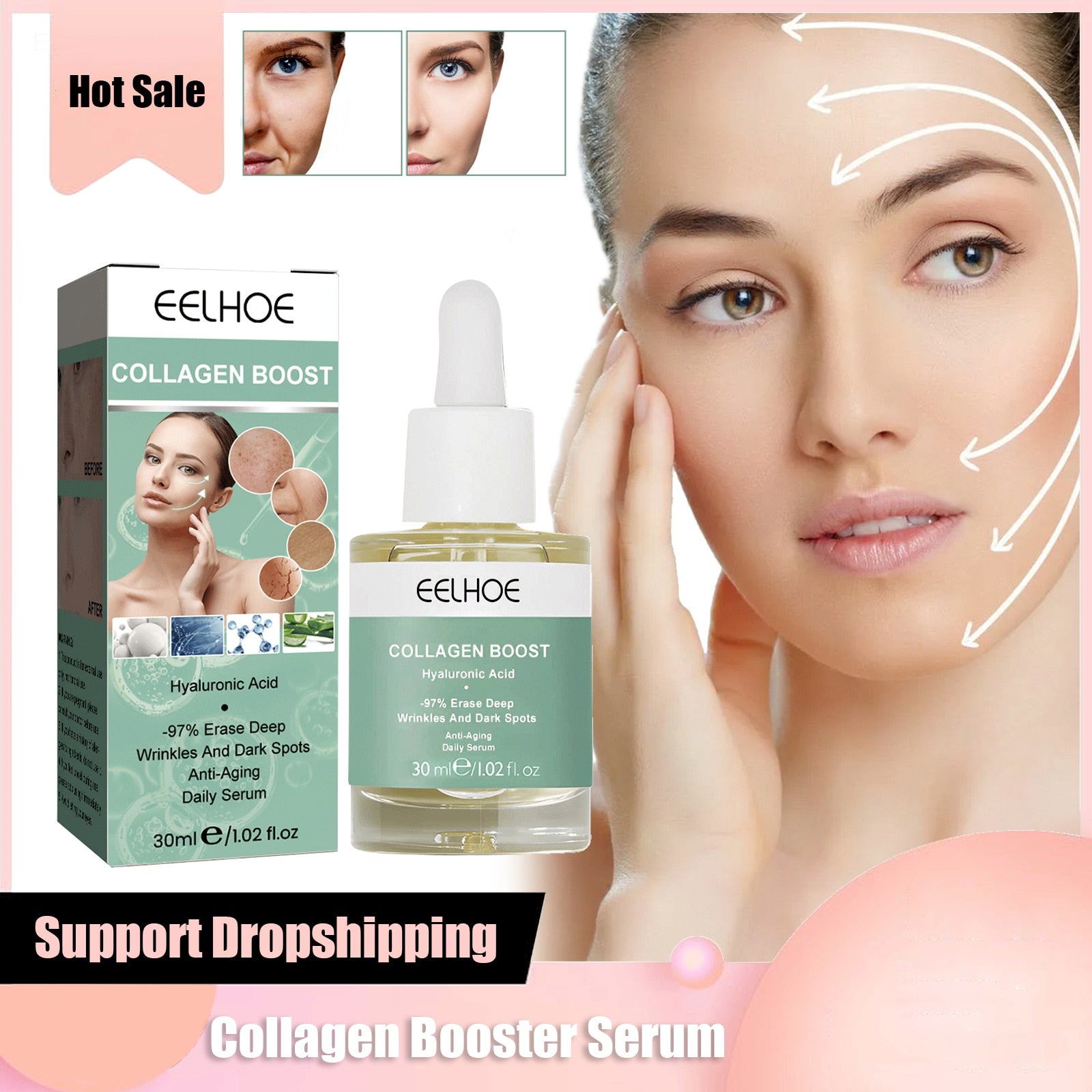 ð Welcome to the world of flawless skin with our Collagen Booster Serum! Say goodbye to dullness, wrinkles, and dark spots, and hello to radiant, youthful skin! Here's everything you need to know about our magical serum:
