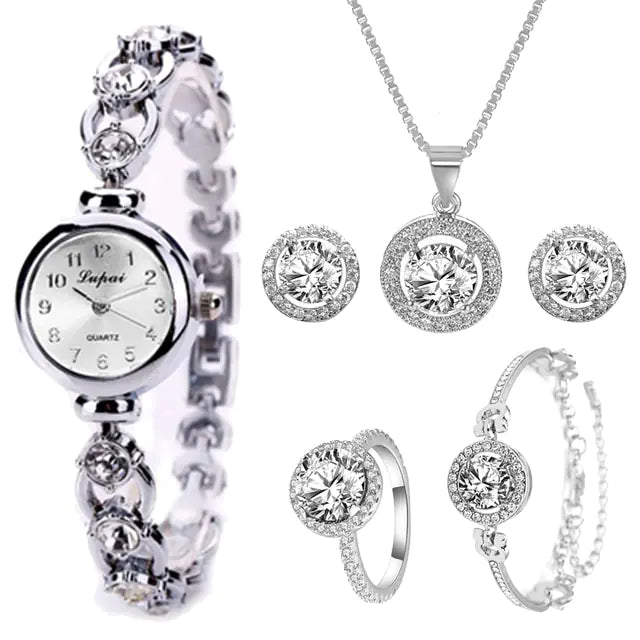Introducing the Crystal Watch Set, the must-have accessory for fashion-savvy women. This set of six luxurious watches comes in rose gold, each with a sparkling crystal face. The perfect addition to any outfit, these watches are sure to turn heads and make a statement. Whether you're dressing up for a special occasion or just adding a touch of glamour to your everyday look, the Crystal Watch Set is a must-have for any fashionista.