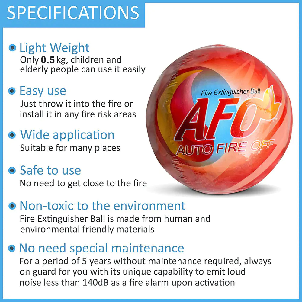 In case of fire, simply throw the Fire Extinguisher Ball into the fire or install in fire-prone positions for automatic response. The ball will explode and make noise to catch everyone's attention nearby, so you don't need to be close to the fire scene to extinguish the fire. Made of totally harmless materials that are safe for users and the environment, the ball is effective and rapid in extinguishing fires that have been touched by flames for 3 seconds at a temperature of 70 degrees C. Lightweight and easy to use, the Fire Extinguisher Ball is a must-have tool for any home or office.