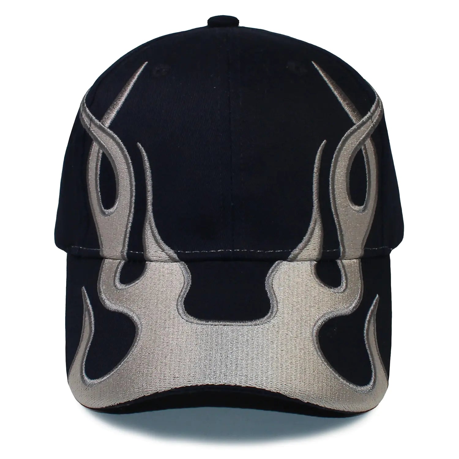 Introducing the new Flame Baseball Cap, the ideal accessory for any outdoor activity. Combining two classic designs - a traditional baseball cap and retro trucker style - this hat provides ample coverage, is suitable for both men and women's fashion, and looks great whatever you're doing. The Flame Baseball Cap is available in both black and navy, allowing customers to match their unique style. The navy version is soft grey with an embroidered flame logo on the front panels. Both versions feature a lightweight yet breathable fabric that will keep you cool during summer activities.