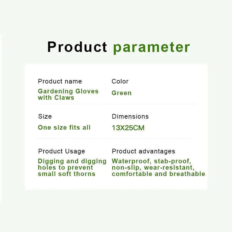 Crafted with innovation in mind, our gloves feature built-in claws on the fingertips, transforming your hands into powerful gardening instruments. With just a simple flick of your fingers, you can effortlessly loosen soil, dig holes, and plant seeds with precision and ease.