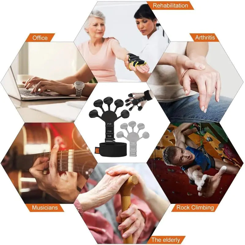 Introducing the Finger Gripper Guitar Finger Exerciser, a compact and versatile hand strengthener designed specifically for patients and individuals seeking to improve finger dexterity and strength. This finger exerciser features a user-friendly design that allows you to train and recover your hand strength conveniently. With six adjustable resistance levels, ranging from beginner to advanced, you can customize your workout to match your current strength and gradually increase the intensity as you progress. The device is compact and lightweight, making it portable and easy to carry with you anywhere. Whether you're at home, in the office, or on the go, you can conveniently incorporate finger exercises into your daily routine.