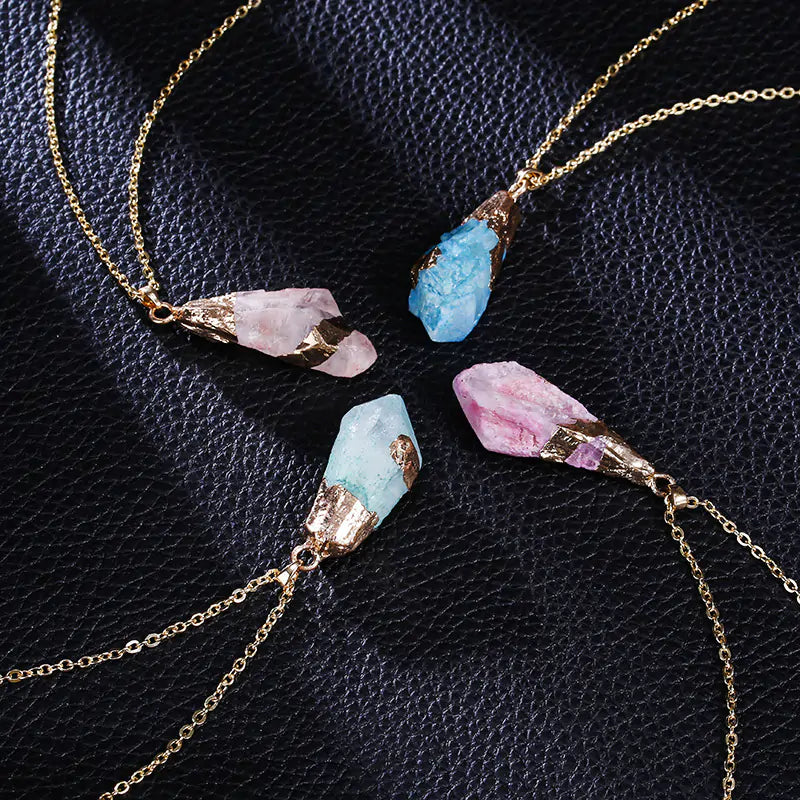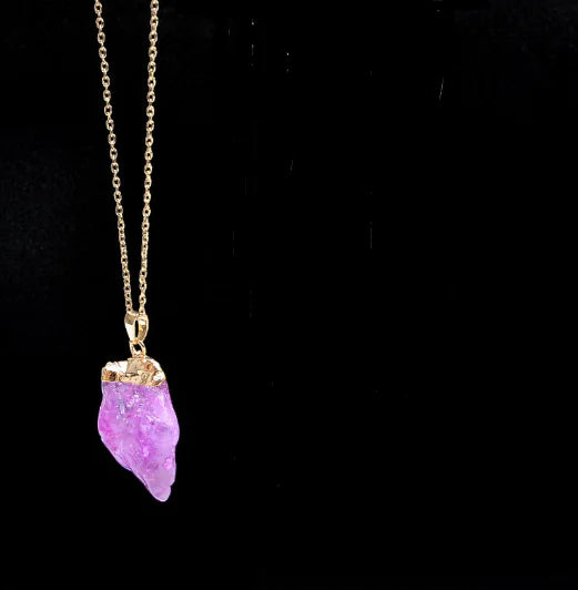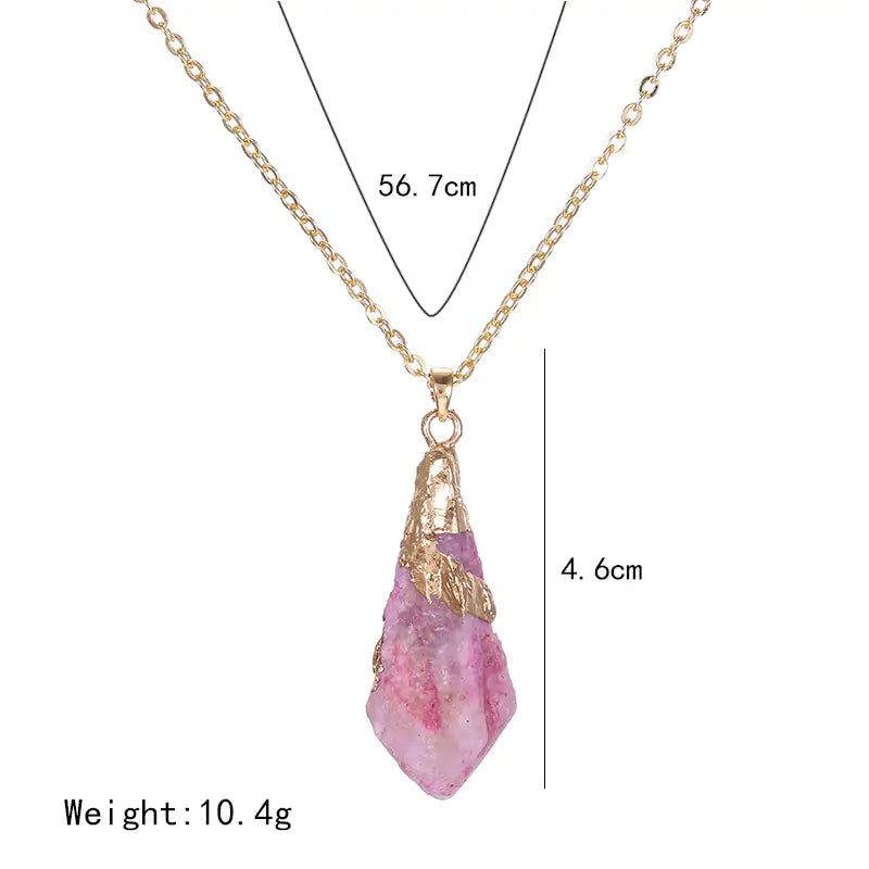 Introducing our handmade Twining Irregular Natural Stone Pendant Necklace! This beautiful necklace is crafted with purple crystal and pink quartz stones, making it a stunning and unique piece of jewelry. The pendant hangs from a dainty chain, and the overall look is simply elegant. Whether you're dressing up for a special occasion or just adding a touch of luxury to your everyday look, this necklace is perfect. And because it's handmade, you can be confident that no one else will have one like it. Order yours today!