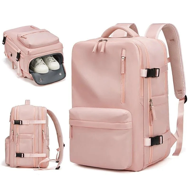 Keep your belongings secure and organized with our Women Travel Minimalist Backpack. Featuring an anti-theft back pocket for your phone, a separate shoe compartment, and a water-resistant wet bag, it ensures your items stay dry, organized, and easily accessible throughout your adventures. Travel smarter with our versatile backpack designed to elevate your travel experience.