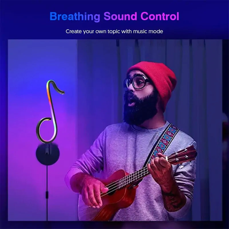 Introducing the Music Note Light, the perfect decoration for your home this holiday season! This smart LED lamp is able to sync to any type of music, and features a mic mode that will change the light color with your voice. The minimalist design takes up no space on your table, and the RGB LED display creates a vivid and ambient lighting effect that is sure to set the mood for any occasion. Whether you're hosting a party or just relaxing at home, the Music Note Light is the perfect way to add some fun and festive flair to your space.