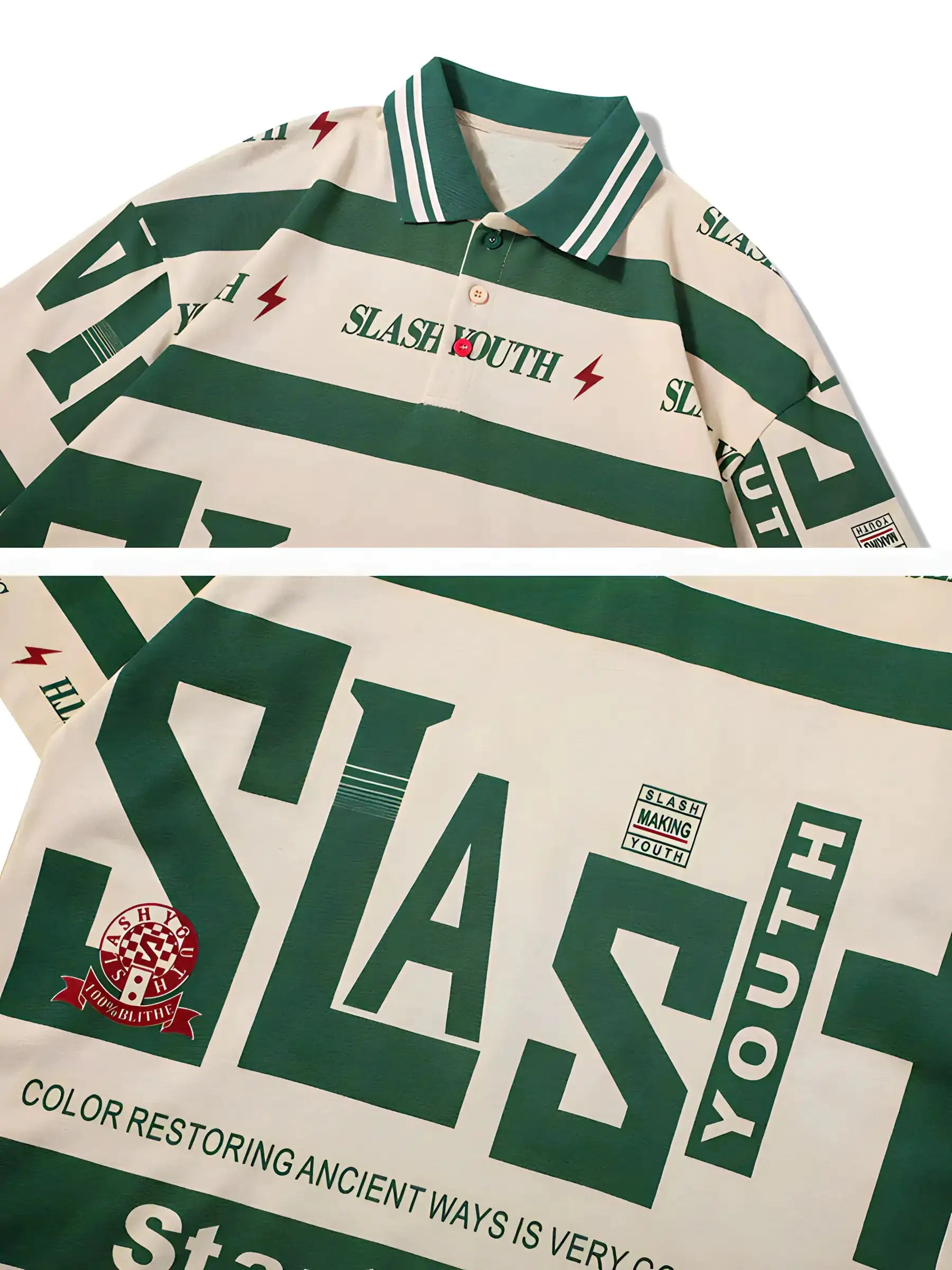 Introducing the Oversized Slash Polo Shirt – a fusion of 2000s style with a contemporary and edgy update. The dynamic green striped accent injects a burst of vibrancy against the khaki backdrop. Designed with short sleeves and an oversized silhouette, it delivers both comfort and an effortlessly chic aesthetic. Crafted from a cotton and polyester blend, this shirt seamlessly combines softness with long-lasting durability. Whether you're after a laid-back or genuine look, this piece presents the ideal choice. Embrace the essence of casual authenticity with the Oversized Slash Polo Shirt.