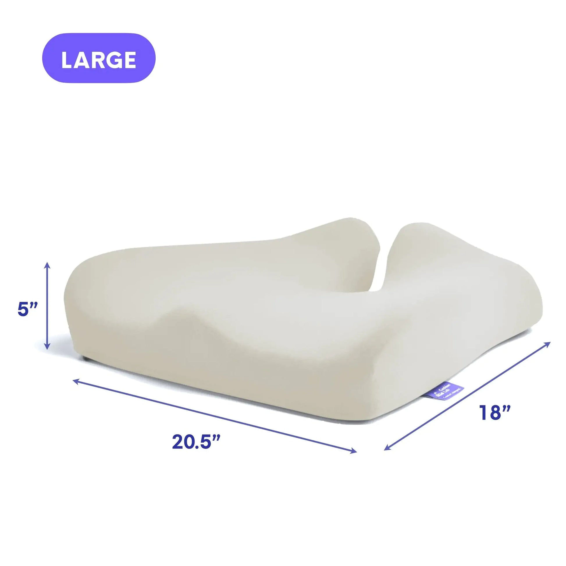 Introducing the Ergonomic Pressure Relief Seat Cushion, the perfect solution for better and more comfortable sitting in any chair – at home, at work, or while driving. This cushion is designed by expert ergonomists with innovation in mind. Its proprietary extra-dense charcoal memory foam is not only soft and breathable for maximum comfort but also highly resistant to odors. The shape of this cushion is designed specifically to relieve hip pressure and improve sitting posture, support your seating needs throughout your day without discomfort or fatigue. Additionally, its grippy bottom secures it perfectly to any chair surface so you don't have to worry about it slipping off. For the ultimate comfort when sitting on any chair, pair it with our Back Relief Lumbar Pillow for maximum lumbar support. Available in two sizes: Standard (18 W x 15.5 L x 4 H inches) and Large (21 W x 18 L x 5 H inches) with a suggestion of Large for people weighing over 210lbs. Get yours today and enjoy total comfort all day long!