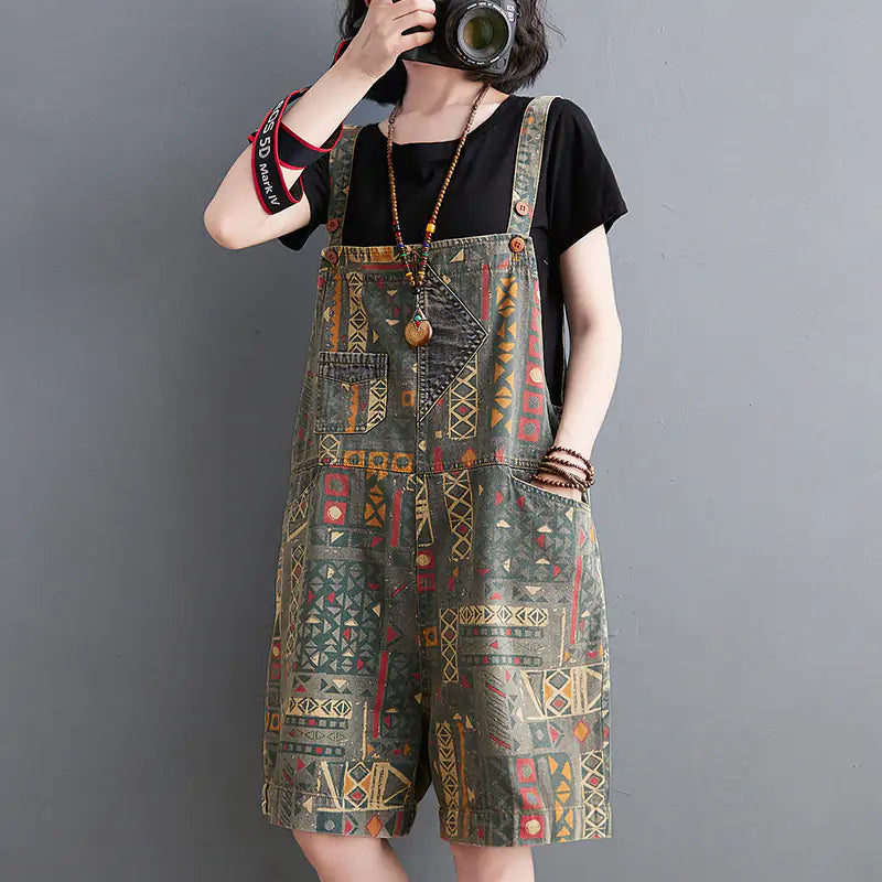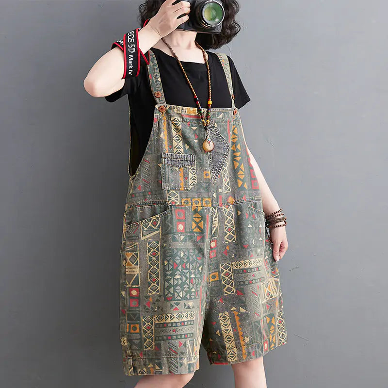 Looking for a stylish and comfortable jumpsuit that you can wear all summer long? Look no further than our Retro Summer Shorts Jumpsuit! Made from soft and lightweight denim, this jumpsuit is perfect for warmer weather. It features a retro-inspired print, wide leg shorts, and overall straps that can be adjusted for a perfect fit. Plus, the front pockets are perfect for carrying all your essentials. Whether you're running errands or meeting friends for lunch, our Retro Summer Shorts Jumpsuit will have you looking and feeling your best.