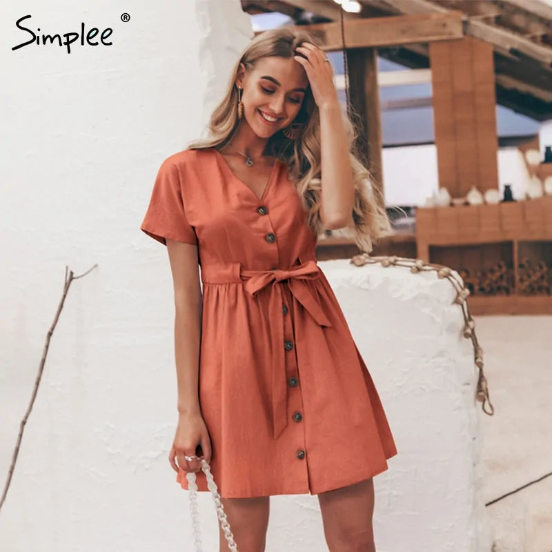Summer is here, and nothing says "warm weather wardrobe" more than this stylish Short V-neck Summer Dresses. This lightweight garment is crafted from soft, breathable cotton and perfectly fitted to flow gracefully against your silhouette. Elegantly adourned with a button closure, this dress is designed to define you with its feminine empire waist, flirtatious V-neck, and short-sleeve length. Whether you’re looking for something classic or with a modern spin, you’ll receive both from this dress, which brings a hint of urban style to any summer occasion. All ladies out there, accept no substitutes and experience the comfort and satisfaction that comes with fashion-forward, female-focused summer styling. Summer will never be the same with theShort V-neck Summer Dresses.