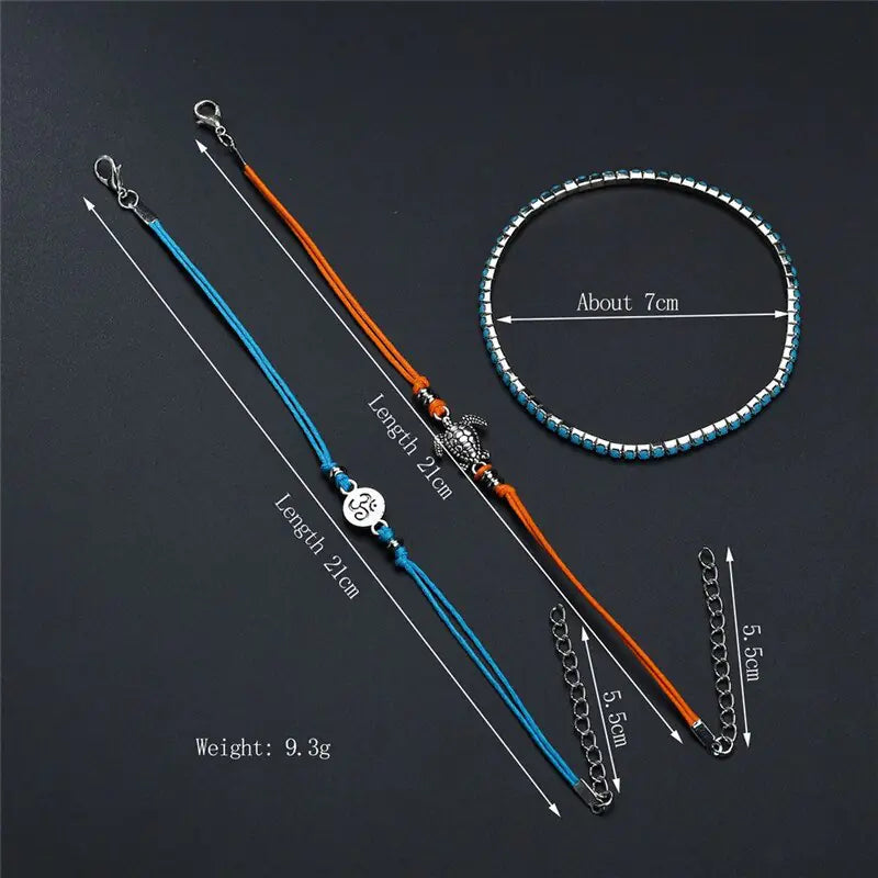 🐢 Turtle Charm: Each anklet is adorned with a silver-colored turtle charm, symbolizing longevity, stability, and protection.