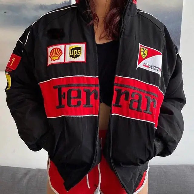 Experience the ultimate blend of style and comfort with this Women's Bomber Racing Jacket. Crafted from a quality cotton blend material, this jacket features a beautiful colorblock design that is perfect for today’s modern woman. It has a lightweight feel, two-way zippers, and pockets with secure closures to keep your valuables safe. The sleek silhouette is flattering on any figure and thanks to the vintage appeal, you can pair it up with almost any look! Whether you're hitting uptown or running downtown, you won't run out of style points in this Women's Bomber Racing Jacket.